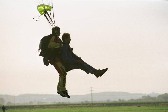 hier ein Bild das nur entfernt mit Drachenflug zu tun hat: ich bekam zum Geburtstag einen Gutschein für einen Tandemsprung mit dem Fallschirm geschenkt. Und hier unsere Landung... <aufatem> ;-)