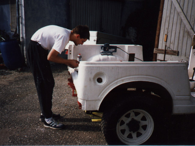 hier bin ich beim Abschleifen der GfK-Karosserie...
